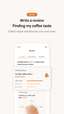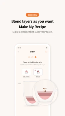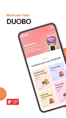 DUOBO 앱에서 두 종류의 커피 캡슐을 조합하여 새로운 맛의 행성을 탐험해보세요.