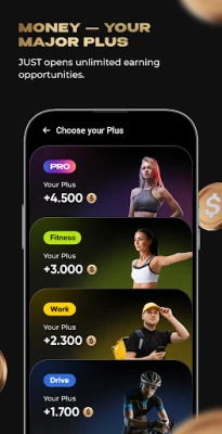 This unique fitness app is designed to help you lose weight, build muscle, and get in shape while earning passive income. Whether you're looking to slim down, build the perfect body, or simply make money through a walking app, JUST has you covered.