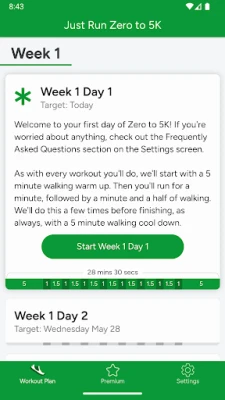 - Zero to 5K: Gets you from absolute zero running experience to 5K in just 9 weeks, with three 30-minute workouts per week