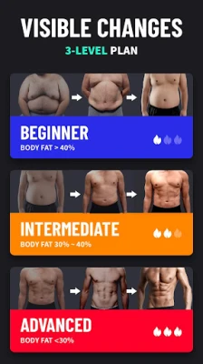 It has 3 levels for everyone, both beginner and pro. Designed by professional fitness coach, it focuses on men’s trouble spots, abdomen, chest, helping you achieve fast weight loss and build abs. Different workouts every day, you can easily stick to it.