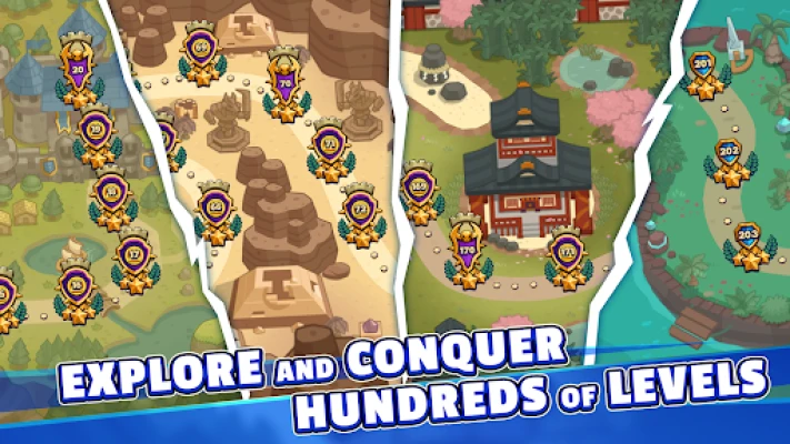 Use archers, barracks, magic towers, and cannons to defend the kingdom from the rush of slimes and rattling skeletons. Explore vibrant worlds of frozen tundra, scorching desert sands, a magical society in the skies, into dark underground tunnels and a land of cherry blossoms. All with unique factions of enemies to conquer, and more to come!