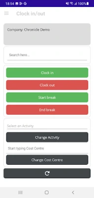 Mobile application to allow remote employee time and attendance clocking in and out, job costing, timesheet, rosters, company announcements, user notes, holiday requests and payslips.