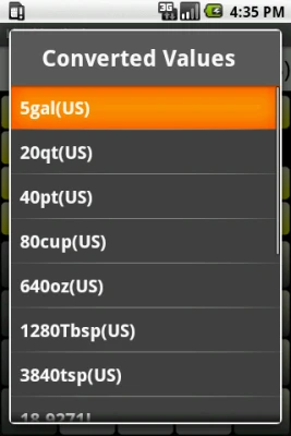 •Convert a result to multiple units, for example 2 qt(US) = 0.5gal(US), 4pt(US), 8cup(US), 64oz(US), 128 Tbsp(US), 384tsp(US), 1.8927L, 1892.7059ml, 0.4163gal(Imp), 1.6653qt(Imp), 3.3307pt(Imp), 66.6139oz(Imp), 106.5823Tbsp(Imp), and 319.7468tsp(Imp).