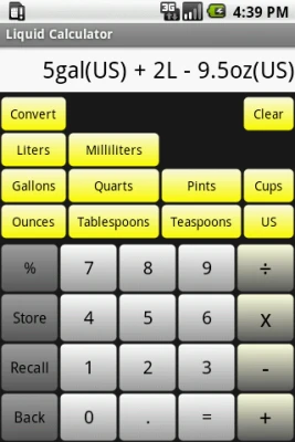 •Add, subtract, multiply and divide and take percents of liquid volumes, for example 5gal + 3qt = 5.75gal or 3cup – 4oz = 2.5cup